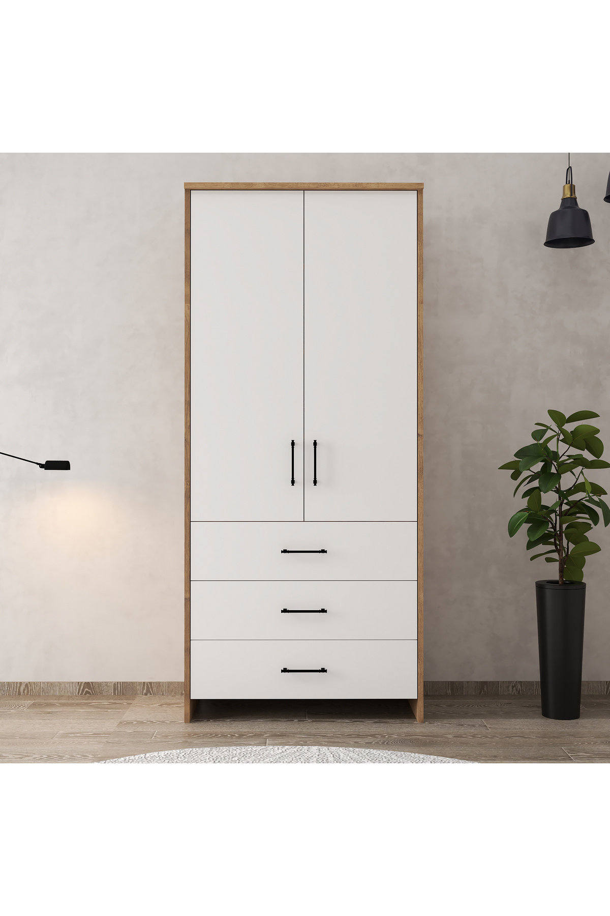 2 Kapaklı 3 Çekmeceli Safir Meşe-Beyaz Gardırop
